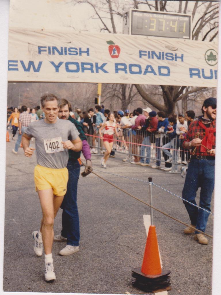 I couldn't help laughing over the regular old cotton shirt, tucked into his shorts, and the big socks. Compare that to what I'm going to wear on my run tomorrow, the temps are going to be in the twenties, so I'll put on an Under Armour type shirt, with a tech shirt over it, Nike Dry-Fit pants, and anti-blister, cushioned socks. Running clothes have come a looooong way.